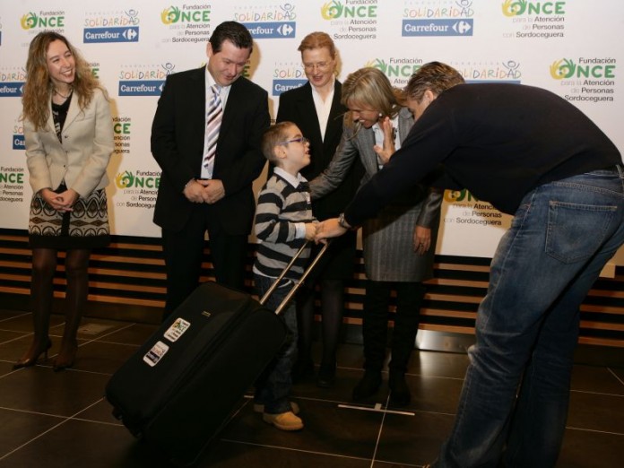 La Fundación Solidaridad Carrefour hizo entrega ayer a la Fundación ONCE para la Atención de Personas con Sordoceguera (FOAPS) de 40 maletas con material de estimulación y otras ayudas técnicas (ordenadores, teléfonos móviles, software accesible), que permitirán a los mediadores que trabajan con estos niños mejorar su comunicación con el mundo exterior e incrementar su autonomía personal.