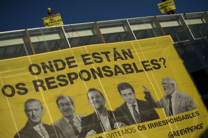 «Rajoy, Cascos, Cañete y Matas son irresponsables frente a la catástrofe del Prestige porque no les podemos exigir responsabilidad y actuaron con falta de previsión», ha declarado Raquel Montón, responsable de la campaña Energía de Greenpeace.