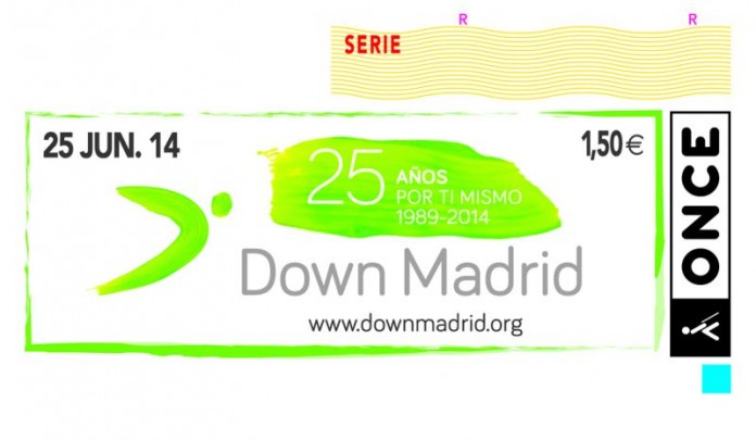 Madrid, 23 de junio de 2014 (ONCE).-  El 25 aniversario de Down Madrid protagoniza el cupón de la ONCE del 25 de junio. Con esta iniciativa, la ONCE homenajea y apoya la labor de Down Madrid. Cinco millones y medio de cupones llevarán esta asociación por toda España.
