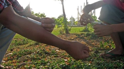 Heroin in Kachin State can cost as little as 1,000 kyat (US$1) per dose, and some research suggests injecting has become more popular than traditional opium-smoking among some of Kachin’s tens of thousands of users, as it delivers a more cost-effective “high”.