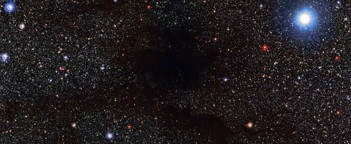 En esta intrigante nueva imagen vemos cómo Lupus 4, una burbuja de gas y polvo en forma de araña, oculta las estrellas de fondo como lo haría una nube gris en una noche sin luna. Aunque ahora se vea encapotado, es en estas densas burbujas de materia, que se encuentran en el interior de nubes como Lupus 4, donde se forman nuevas estrellas y donde, más tarde, nacerán radiantes. La imagen ha sido captada por el instrumento Wide Field Imager, instalado en el telescopio MPG/ESO de 2,2 metros de ESO, en el Observatorio La Silla, en Chile.