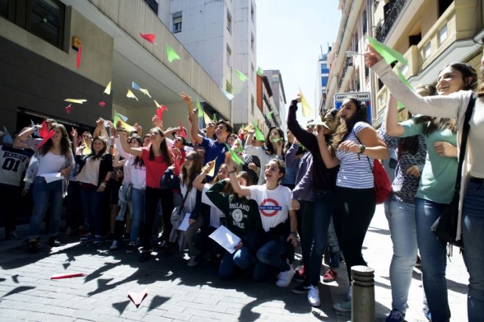 · Esta mañana, más de 100 jóvenes han realizado un acto de calle en Madrid donde han enviado simbólicamente aviones con mensajes de esperanza para los más 25 millones de menores que se han visto obligados a huir de sus hogares a causa de las guerras.