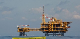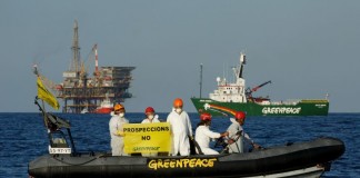 Activistas de Greenpeace piden frente a la plataforma petrolífera Casablanca el...