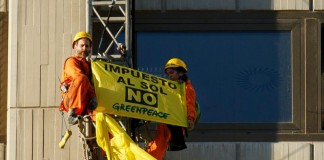 Greenpeace protesta contra el impuesto al Sol en el ministerio de...
