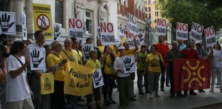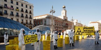 Activistas de Greenpeace llevan bidones “radiactivos” a la Puerta del Sol...