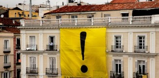 Activistas de Greenpeace despliegan una pancarta en la Puerta del Sol...