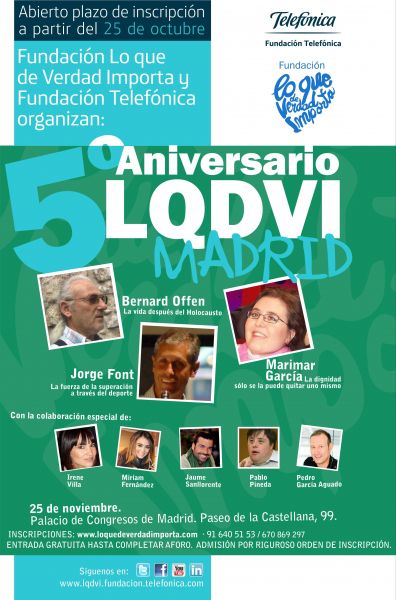 LQDVI es un encuentro gratuito organizado por la Fundación ‘Lo que de verdad importa’ y la Fundación Telefónica, dirigido a jóvenes universitarios y preuniversitarios, donde los protagonistas cuentan en primera persona experiencias impactantes que les han hecho comprender lo que de verdad importa en la vida.