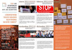 Desde la Asociación Pro Derechos Humanos de Andalucía – APDHA os enviamos un calendario-resumen de 2011 que muestra, mes a mes, un balance de algunas de las vulneraciones de derechos humanos que tuvieron lugar el pasado año 2011 y el trabajo de denuncia y sensibilización de nuestra asociación con respecto a esas realidades.