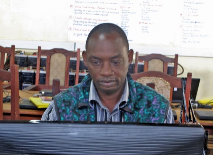 Participants in JRS’s programme at Dzaleka need to be motivated to stick with their studies in a camp environment where poor living conditions and insufficient food can be a major distraction. In March, the World Food Programme, which supplies food aid to the camp, slashed rations for refugees by half due to a lack of funding and many of the students quietly typing at computers in the programme’s makeshift classroom were working on empty stomachs.