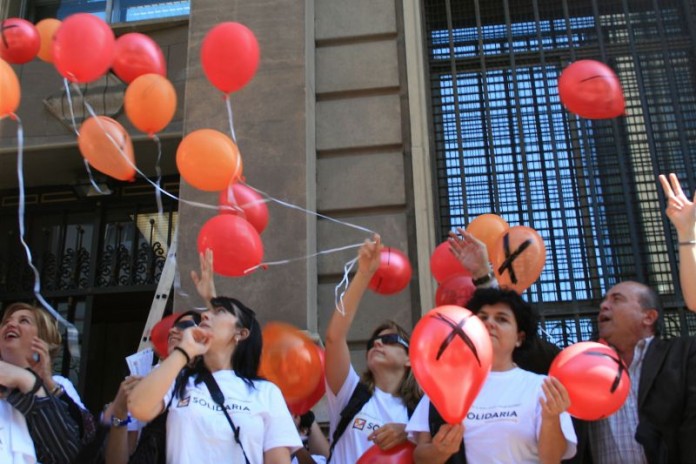 Una suelta de globos marcados con una gran ‘X’ ha sido el acto simbólico que ha servido a las principales plataformas del Tercer Sector Social de la Comunitat Valenciana para presentar la campaña a favor de la X Solidaria. El objetivo de esta campaña es hacer un llamamiento a los contribuyentes para marcar la casilla de Fines Sociales en la Declaración de la Renta, un gesto que determina que el 0’7% de la cuota íntegra del IRPF se destine a proyectos sociales que llevan a cabo las entidades del Tercer Sector Social.  De este modo, voluntarios de las plataformas convocantes se han concentrado ante la Delegación de Hacienda de Valencia  y, tras informar a los transeúntes, han dibujado una ‘X’ en globos de colores que han soltado después.