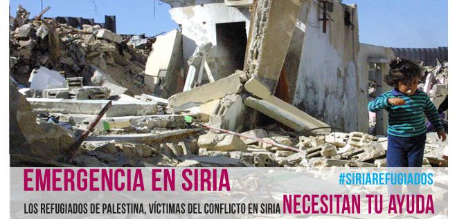 Como consecuencia del conflicto armado que desde 2011 acontece en Siria, la ayuda humanitaria para los cerca de 500.000 refugiados de Palestina residentes en este país es inminentemente necesaria. Las condiciones socioeconómicas de unos 30.000 familias de refugiados se han visto especialmente agravadas por esta situación, sobre todo, entre las familias cuyo cabeza de familia son mujeres, los ancianos que tienen familiares desempleados -y, por tanto, no pueden ayudarle económicamente-, así como quienes viven con personas discapacitadas o enfermos. Todos ellos dependen de la ayuda humanitaria para cubrir sus necesidades básicas.