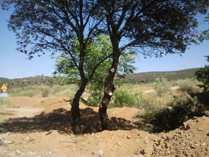 Además, para realizar estos trabajos se han cortado ramas de encinas de 50 centímetros en pleno mes de julio y se ha cubierto de tierra hasta la copa decenas de olmos La poda de las encinas incumple el decreto 8/1986, de 23 de enero que regula las labores de podas, limpias y aclareos de las encinas de 27 de octubre, en lo relativo a la finalidad de la poda, el tamaño de las ramas y la época en la que se realiza las tareas, presuponiendo por ello que carecen del permiso necesario. Asimismo, la imprudencia de cortar las ramas con motosierra junto al monte podría haber provocado un grave incendio forestal.