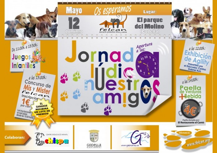 La asociación Felina y Canina, FELCAN, realizará, el domingo 12 de mayo, la jornada lúdica Nuestros Amigos en el parque del Molino de Godella. El evento, que tiene como objetivo recaudar fondos para la construcción de un nuevo refugio de animales abandonados, se realizará a lo largo de la mañana, concretamente entre las 10.30 y las 14 horas.
