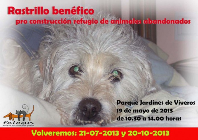 La asociación Felina y Canina, FELCAN, realizará, el domingo 19 de mayo, un rastrillo benéfico en Jardines de Viveros de Valencia. El evento, que tiene como objetivo recaudar fondos para la compra de la parcela en la que se ubicará el nuevo refugio de animales abandonados, se realizará a lo largo de la mañana, concretamente entre las 10.30 y las 14 horas.