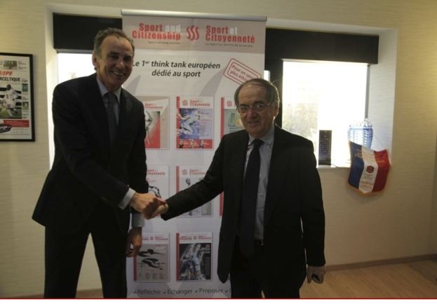 Noël Le Graët, Président de la Fédération Française de Football et Laurent Thieule, Président du think tank Sport et Citoyenneté, ont signé une convention de partenariat entre leurs deux structures.