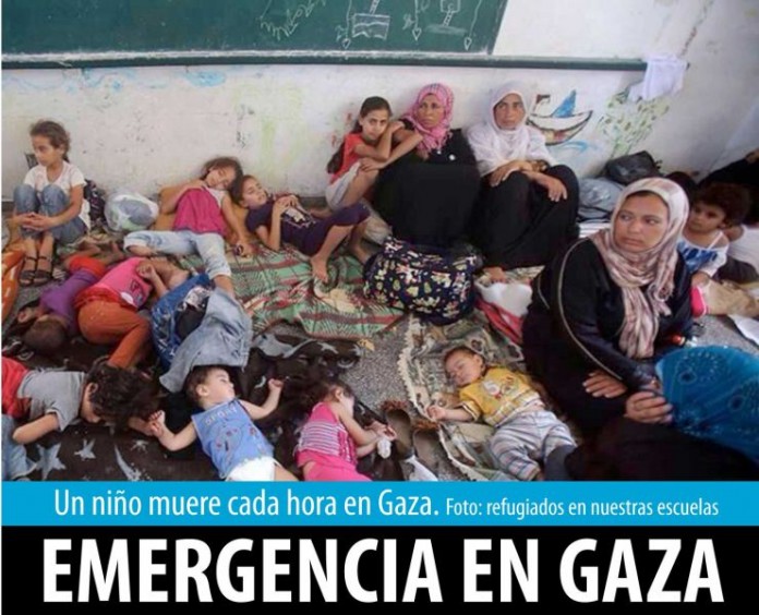 Comienzo a escribiros y me planteo por dónde empezar. Cómo haceros llegar todo el miedo, dolor y el sufrimiento que afronta la población de la franja de Gaza. Cómo contaros qué sienten los niños de 5 años al ver cómo por tercera vez en su corta vida han de enfrentarse al terror de la violencia armada. Cómo contaros la impotencia que provoca ver cómo una de nuestras escuelas, donde cientos de civiles buscaban refugio y seguridad, es atacada, destrozada, arrasando con la vida de civiles, la mayoría mujeres y niños. Cómo haceros llegar nuestra más profunda indignación.