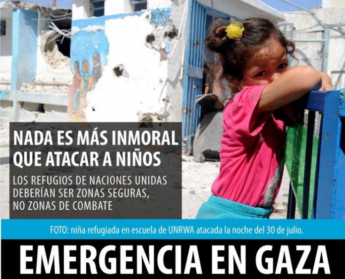 Una vez más la realidad de Gaza nos golpea en la cara. El pasado miércoles murieron 20 personas mientras dormían, a consecuencia del ataque de Israel a una de nuestras ‘escuelas-refugio’. Entre los muertos, muchos niños. Cuando el proyectil alcanzó el aula donde se resguardaban de la violencia muchos niños dormían junto a sus padres. Este hecho debería ser objeto de vergüenza universal, y por ello instamos a la comunidad internacional a poner fin de inmediato a la masacre en Gaza del pueblo palestino.