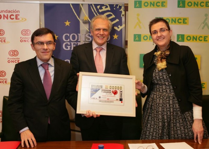 Madrid 9 de diciembre de 2014 (ONCE).- El Programa Herencias y Legados con Corazón es el motivo del cupón de la ONCE del 16 de diciembre. Cinco millones y medio de cupones de la ONCE llevarán por toda España este programa, creado por las fundaciones ONCE y Aequitas (del Notariado).