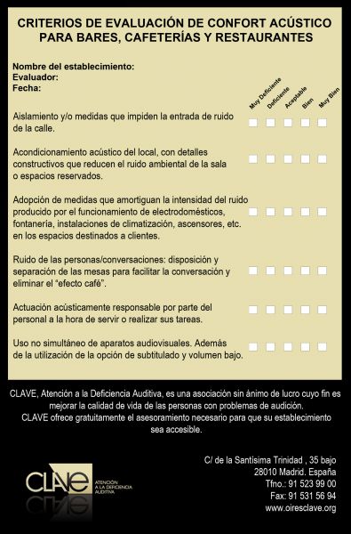 Clave les anima a utilizar los criterios, de muy fácil valoración, incluidos en la guía “Locales acústicamente amables para todos”