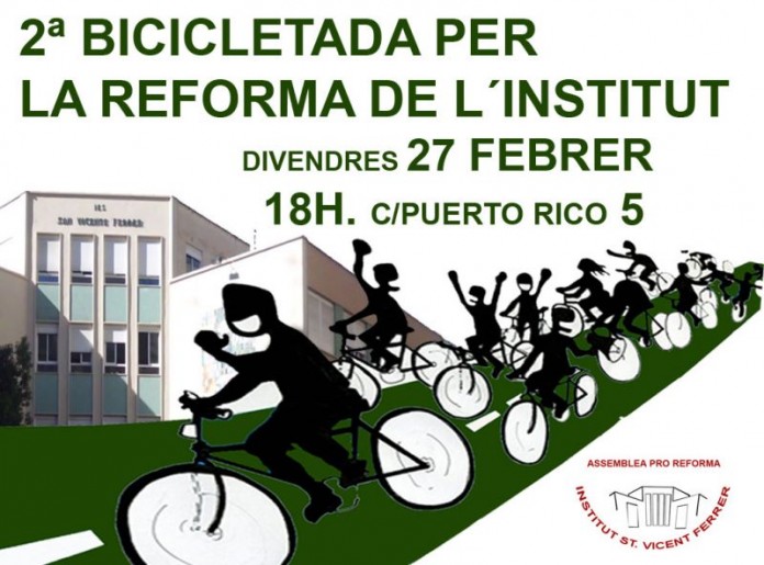 VIERNES 27 DE FEBRERO 2ª BICICLETADA DE LA ASAMBLEA PRO REFORMA DEL S. VICENTE RECLAMANDO LA REFORMA INTEGRAL DEL INSTITUTO.