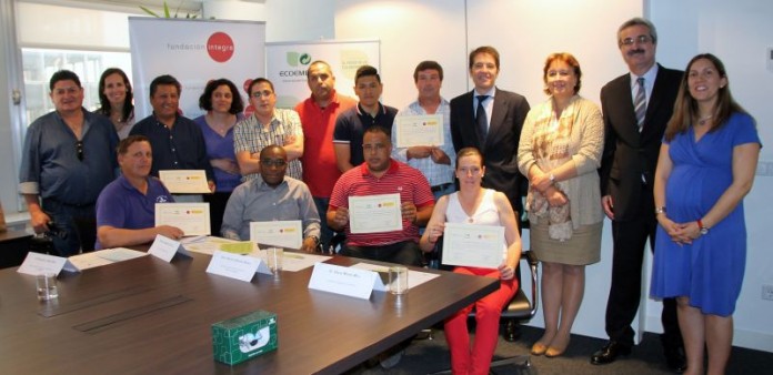 Madrid, 29 de mayo de 2015.- Ecoembes, la organización que cuida del medio ambiente coordinando el reciclaje y el ecodiseño de los envases en España, y Fundación Integra han clausurado el curso de formación “Gestión y tratamiento de residuos” para 15 personas en riesgo de exclusión social, que forma parte del proyecto “Renacer”; un programa desarrollado gracias a una subvención concedida por el Ministerio de Sanidad, Servicios Sociales e Igualdad.