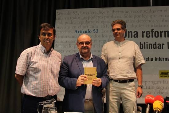 Los directores de Amnistía Internacional (Esteban Beltrán), Greenpeace (Mario Rodríguez) y Oxfam Intermón (José María Vera) presentaron hoy en rueda de prensa la campaña “Blinda tus derechos. Cambia el artículo 53” que apuesta por una reforma constitucional que mejore las garantías de protección de los derechos humanos y que incluya otros que hoy no están recogidos en la Carta Magna.