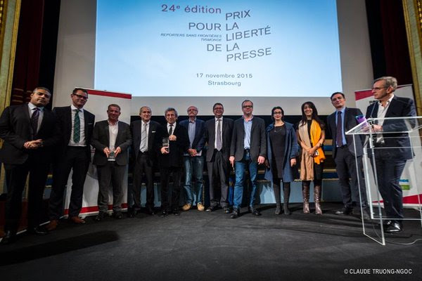 Reporteros Sin Fronteras y TV5 Monde entregaron este 17 de noviembre en Estrasburgo (Francia) el Premio a la Libertad de Prensa 2015 al diario turco Cumhuriyet, ganador en la categoría de Medios, a la periodista siria Zaina Erhaim, distinguida como Periodista del año, y al colectivo de blogueros etíopes Zone9, en la modalidad de Periodismo ciudadano.