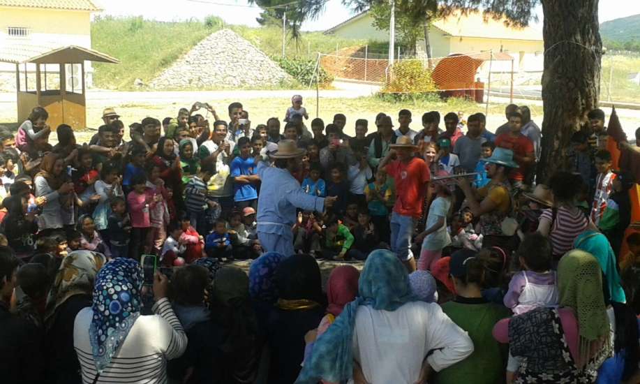 Un equipo de cuatro artistas se encuentra del 20 d’abril al 4 de mayo de 2016 en Grecia para hacer reír a miles de niños y niñas refugiados y sus familias. El objetivo es proporcionar apoyo psicológico y emocional, a través de la comicidad, a la infancia y, en consecuencia a sus familias, víctima de la guerra de Síria.